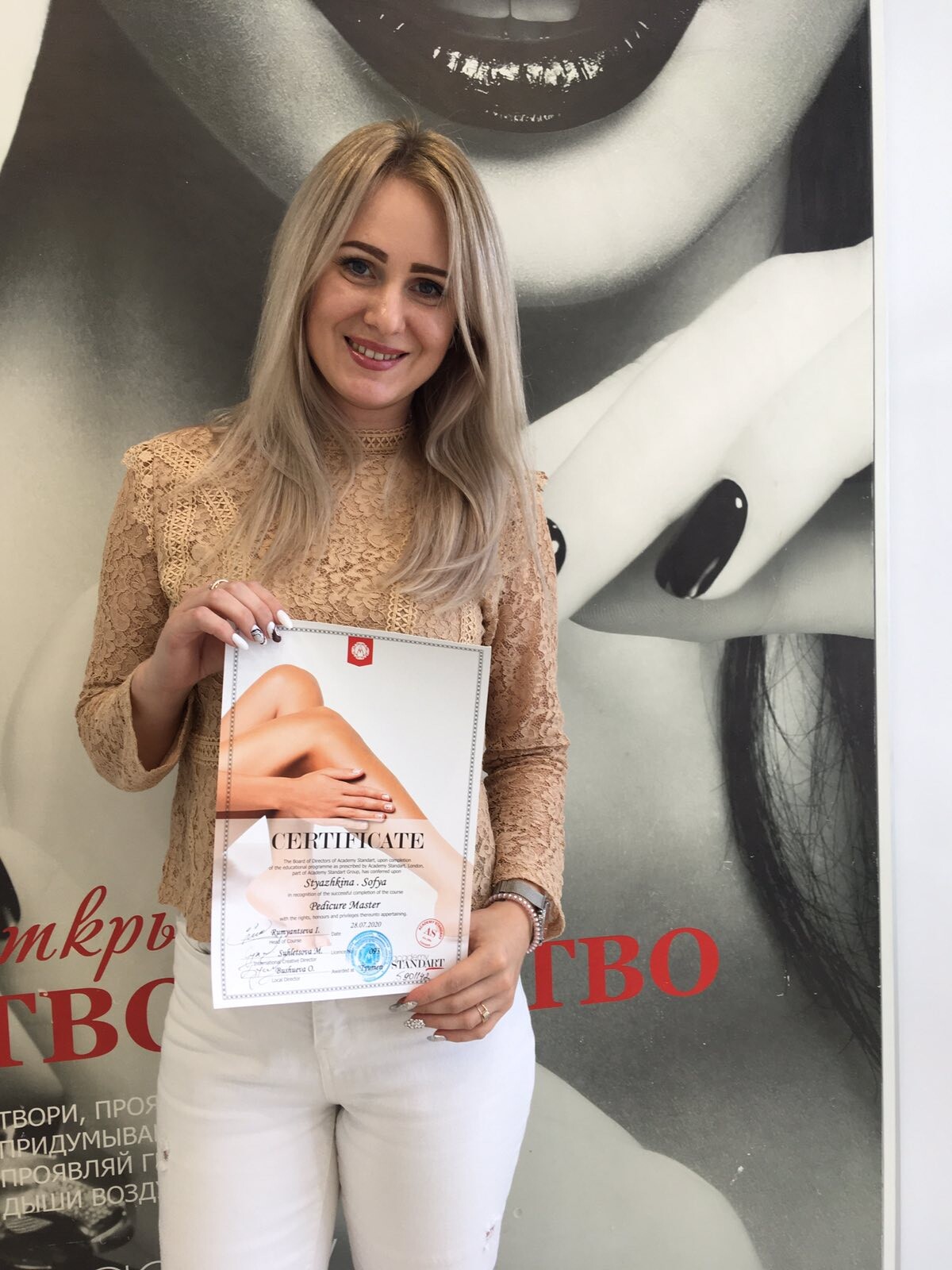 Здравствуйте, 2 года назад училась в академии стандарт на мастера по наращиванию ресниц, мне все очень понравилось. И сейчас я снова решила учиться только мастеру маникюра. Персонал очень приветливый и атмосфера сама позитивная. Особенно мне запомнилась менеджер Елизавета, она все доходчиво и с улыбкой рассказала мне все в прошлый раз и в этот раз все великолепно. Буду проходить курсы только у вас.